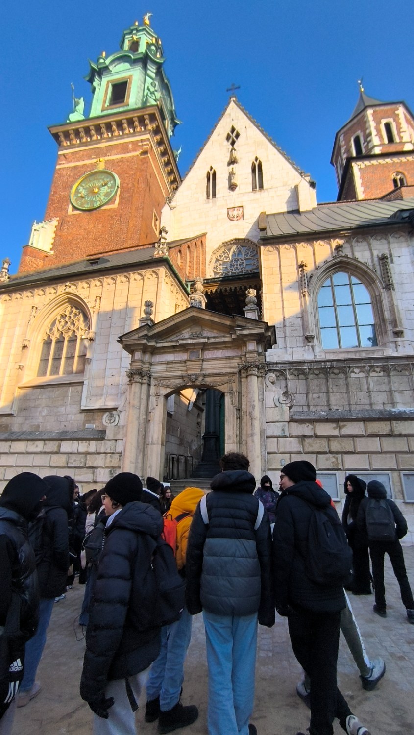 Après le déjeuner, le groupe s’est rendu sur la colline de Wawel, lieu emblématique de l’histoire polonaise. Le château royal et la cathédrale ont permis d’aborder le rôle politique et religieux de Cracovie au fil des siècles. Les déplacements à pied et en transports en commun ont également aidé les élèves à se repérer dans la ville.